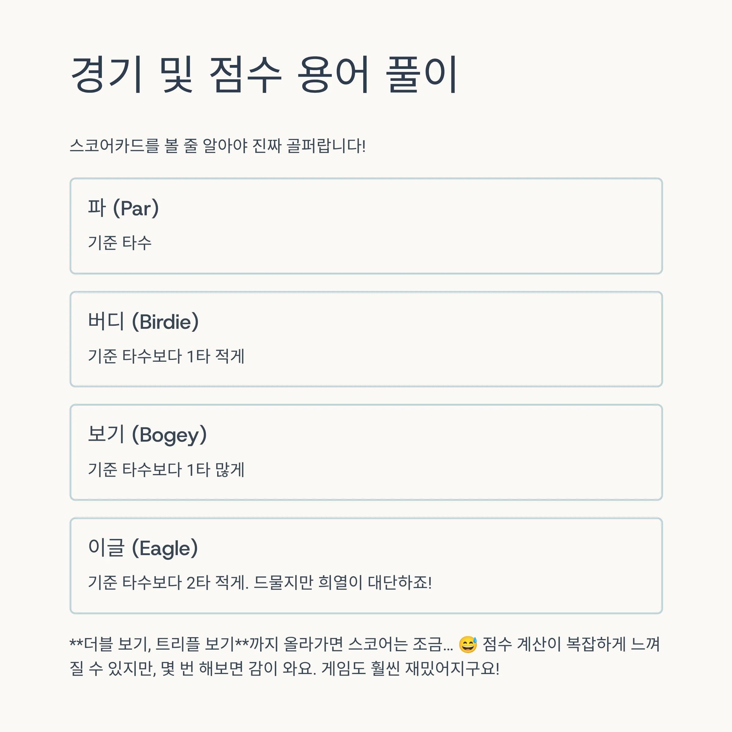 - 보기 (Bogey)**: 기준 타수보다 1타 많게